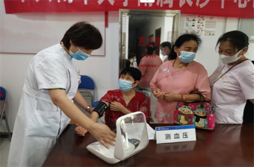 全科医学科党员邓红专、王艳霞及谭鑫等几位护士长,负责为就诊群众测量血压及血糖、登记和维持现场秩序,由于就诊人数较多,她们全程没有一刻停歇,小区业主们纷纷伸出了大拇指。