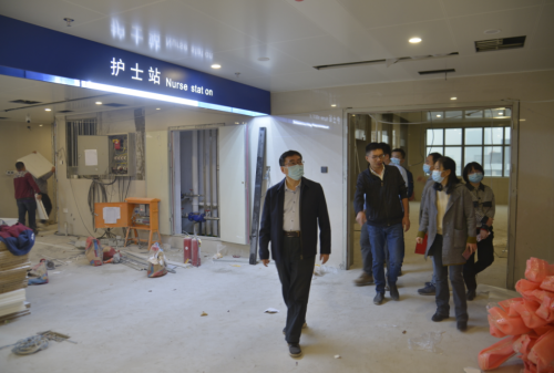 在五楼手术室的施工现场,冯永强调,要加强施工现场人员的管理和物资调度,确保手术室装修进度与工程整体同步协调。