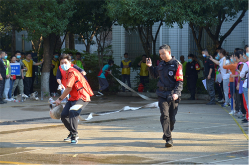篮球场举行。本次职工消防安全趣味运动会活动由院工会、保卫科联合主办,13支分工会职工代表队、150余名职工参加。此次消防安全趣味运动会设置消防安全知识竞赛、火场逃生赛、水枪水带连接赛三个比赛项目,集知识性、实用性、趣味性于一体,将防火、灭火、逃生自救知识融入到比赛各个环节之中,让职工在愉快的“比拼”中巩固消防知识,熟练运用灭火逃生技能。