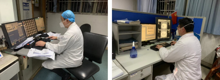说起科内冲锋在前的32名党员和抗疫“尖兵”们,主任张亚林如数家珍。作为放射科大家长,他看到大家这么辛苦和努力,既心疼又感动。为了更加合理地调配,应对高强度的放射检查任务,放射科在主任张亚林的带领下,在原有门急诊、结核专用机房的基础上,新增发热门诊专用机房,分时分类预约,避免检查人员聚集;同时在患者数量激增的情况下,启用所有机房,技术组、护理组、诊断组均增加上班人数,确保诊疗工作正常进行;发热门诊、急诊病人优先快速出具报告,减少患者等候时间,确保患者安全及时就医。张亚林主任、莫佳敏护士长每日在科室微信群中发布最新防控政策、指导意见、专业资料及相关视频,为“战疫”加油充电、保驾护航!