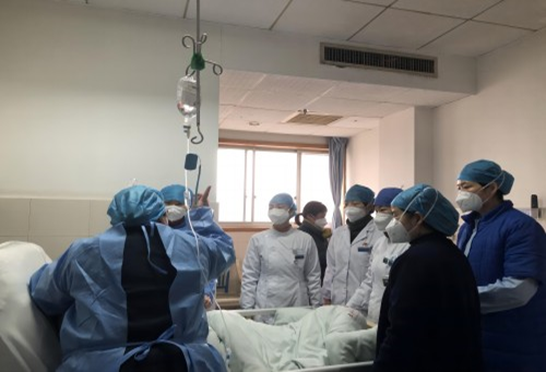 同时,为进一步做好新冠疫情防控新形势下急危重症患者的救治工作,针对全院各临床科室全面收治新冠肺炎患者的现况,护理部立即采取有效应对措施,组织全院呼吸治疗师组成新冠肺炎患者救治指导小分队和俯卧位通气救治小组。每天由护理部主任和科护士长带队,和小分队成员到全院各临床科室进行巡查指导,重点对俯卧位通气治疗、无创呼吸机和高流量氧疗仪的使用和观察、气道管理等方面进行指导,帮助各临床科室正确实施各项治疗,密切观察、有效应对和处理患者治疗过程中的各类问题,保证了患者治疗的及时性和有效性。“27病室I型呼吸衰竭患者,入院时SPO267%,立即给予俯卧位,SPO2上升至90%”,“7病室2床,无创呼吸机辅助呼吸,同时俯卧位,血氧由77%上升至94%”……,在呼吸治疗师专业的指导下,微信群内每天都上报着几十例这些振奋人心的消息,众多患者呼吸功能得到改善,病情得到好转。患者和家属们对小分队成员们专业、细致的指导与护理纷纷点赞,他们说在这里住院治疗很安心,中心立博体育 真正是人民“心中的立博体育 ”。