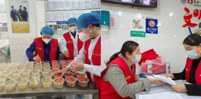 党员、团员、工会会员和社会热心人士组成的60余名志愿者陆续到达食堂,进行前期工作准备。