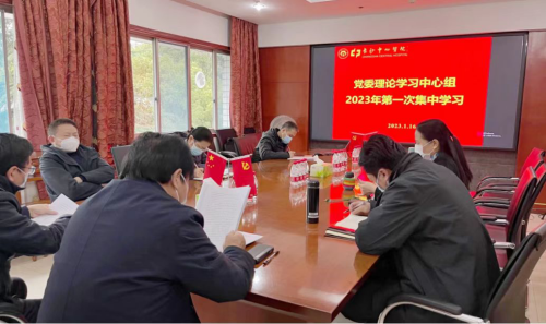 党委理论学习中心组举行2023年第一次集体学习暨民主生活会专题中心组学习。重点学习党的二十大报告、习近平总书记在党的二十届一中全会上的讲话、党章等内容。全体在院班子成员参会。党委书记肖玉坤主持并讲话。