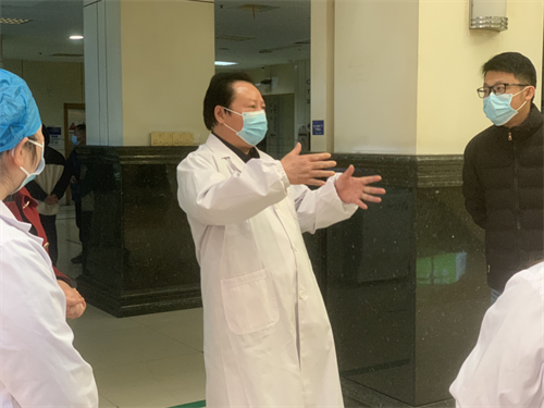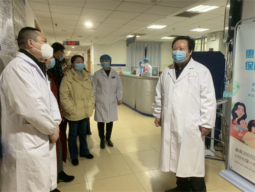 肖玉坤一行先后来到急诊科、发热门诊、门诊大厅和综合住院大楼,与值班工作人员亲切交谈,对大家假期为保证人民群众看病就医做出的积极贡献表示感谢,并指导节后生产、疫情防控、安全生产等工作。