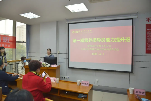 营养科承办的营养指导员能力提升班第一期顺利开班授课了。湖南省营养师工作学会刘爱苹会长出席了开班仪式并热情致辞,对学员们学习营养、热爱营养、传播营养的精神给与很高的赞赏,并对提升班提出办好、办精的殷切希望。陈胜文副院长代表院领导致辞,从切身体会中对营养科工作做出了高度的评价,对提升班开班表示热烈的祝贺。