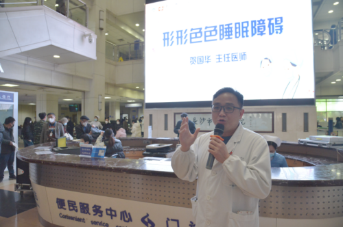 神经内科副主任、主任医师贺国华在义诊活动的科普环节为市民生动讲解了“形形色色的睡眠障碍”。贺国华表示,良好的睡眠对人体健康有积极作用。近年来,我国睡眠障碍发生率日益升高,睡眠障碍患者呈现年轻化趋势,且最常见的两种睡眠障碍类型为睡眠呼吸障碍和失眠障碍。