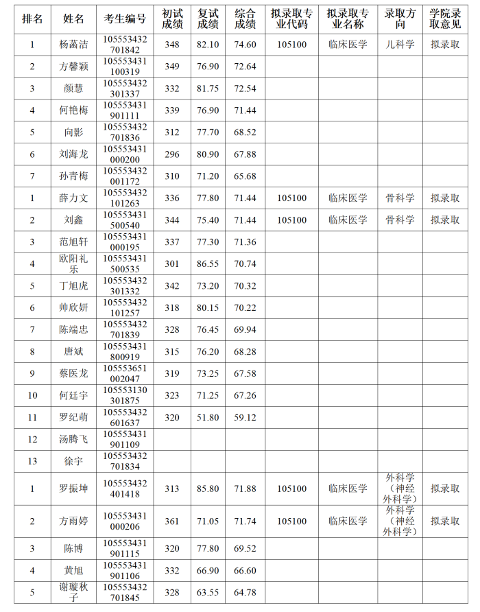 2023年硕士研究生复试结果公示(一志愿院内调剂)