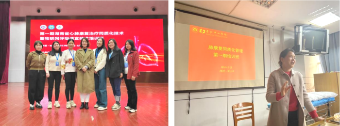 举办的第一期湖南省心肺康复治疗同质化暨物联网呼吸适宜技术培训班,接受为期3周的理论与实践跟班学习。学成之后,团队7名学员回院开展了理论与实践相结合的工作,于3月31日在片区冯雁护士长带领下举办第一期肺康复同质化管理培训班;7名团队成员也分别在和亚学科组开展各项康复技术。