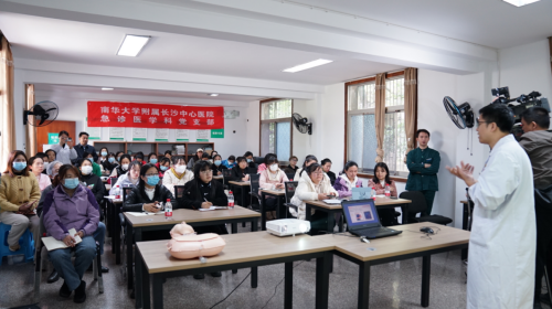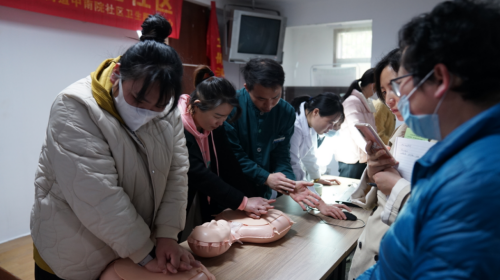 急诊医学科党支部医护团队来到雨花区圭塘街道中南院社区卫生服务中心,为社区居民、30余名幼师及小学老师进行急救知识和技能培训。
