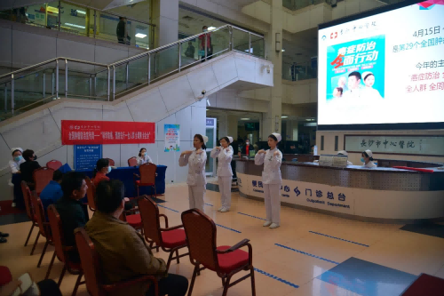 肿瘤科在门诊大厅举办关于“乳腺癌”的科普讲座及义诊活动,护士还现场跳起了乳腺保健操。