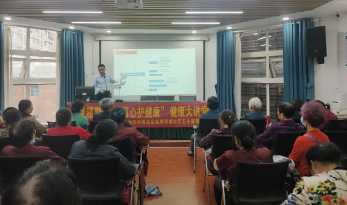 血液内科党支部与中共长沙市雨花区高桥街道社区卫生服务中心党支部,开展医联体帮扶单位党建手牵手活动,深入社区进行中老年人骨髓瘤防治科普讲座,尹亚飞同志为社区90多位居民朋友开展健康讲座。