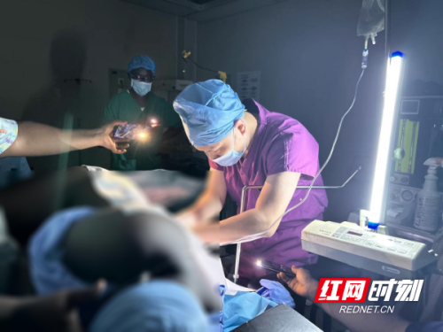 然而,来到手术室后又碰到难题,手术室停电了!而且不知道什么时候市政才能够复电。“情况紧急,没有电打着手电筒也要尽快手术,如果发生胎儿窘迫或子宫破裂,胎儿和产妇都有危险,我们一分钟也不能耽误!”为了全力保障母婴的安全,医疗队的队员们立即启动应急预案,通知电工班员工尽快买油发电,急诊手术在手电筒照明下照常进行。医疗队麻醉专家、湖南省儿童立博体育