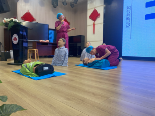 随后,魏稼黎同志详细讲解了心肺复苏的基本步骤,以及人工呼吸、胸外心脏按压的基本要点,并通过人体模型向大家现场展示心肺复苏急救的步骤和方法。