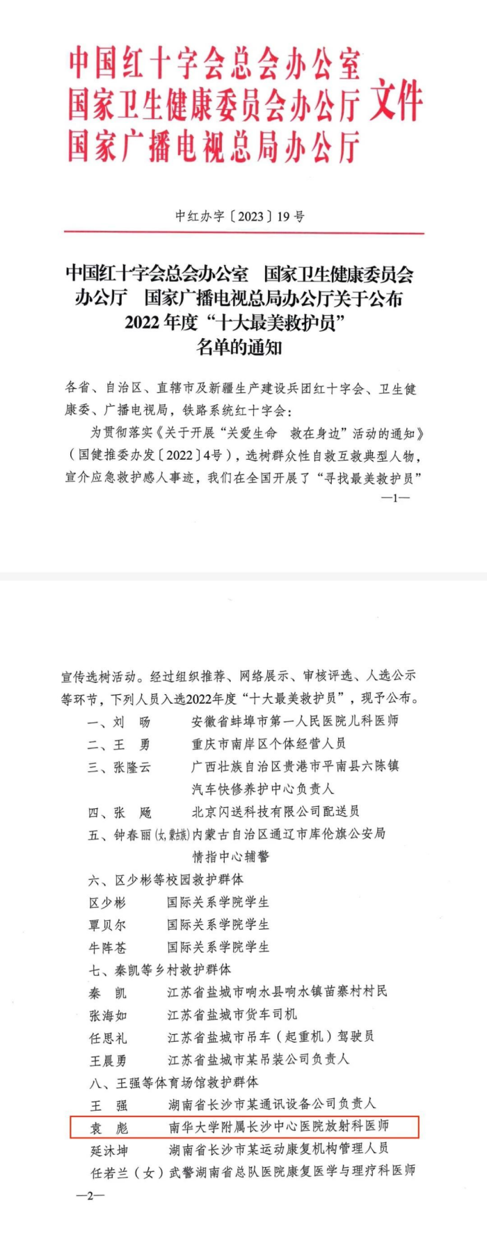 放射科袁彪医师球场面对心脏骤停队友,危急时刻挺身而出,化身救护员,用专业知识拯救生命于危难之中,获得“十大最美救护员”殊荣。