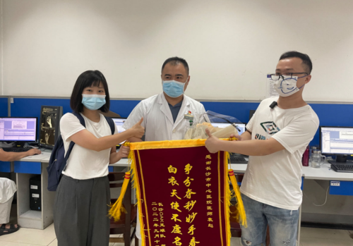 ,向袁彪送上锦旗,表达谢意。