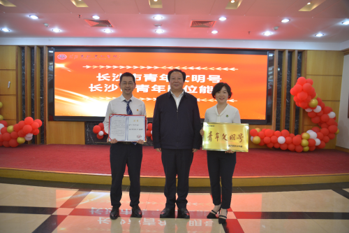 院领导为长沙市青年岗位能手、长沙市青年文明号颁奖。