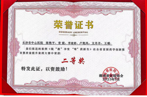 协会药事管理专委会协办的“湖南省首届药学创新服务暨质量提升案例大赛决赛”在长沙举行,通过激烈角逐,由陈艳平主任带队,青霞、李建婷、卢艳风、文丹丹、王瑾5位药师展示的案例《随“激”孕变 “喘”获新生》在125个案例中脱颖而出,斩获二等奖。