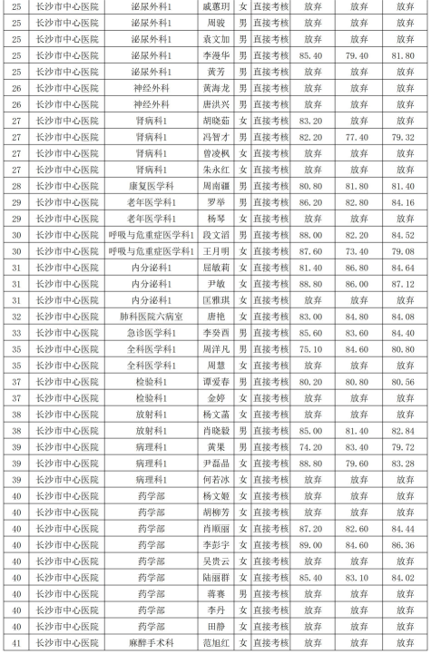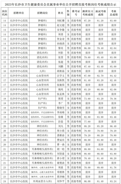 2023年长沙市卫生健康委员会直属事业单位公开招聘直接考核岗位考核成绩公示