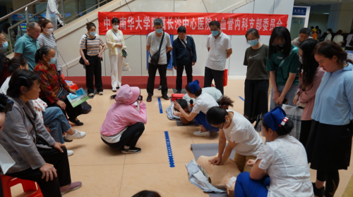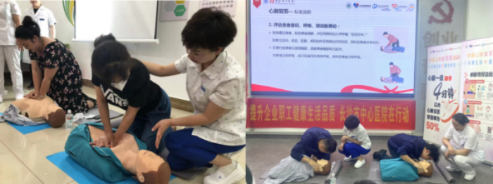 门诊、岳麓区龙骨寺社区、湖南晓光汽车模具有限公司多个场地开展了“关爱生命,救在身边”为主题的宣教活动,结合心肺复苏实操及AED使用为群众带来了多场实用性极强的科普。