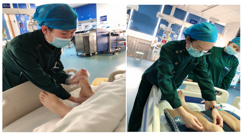 图为医护人员设计制作的踝泵运动+弹力袜,科学防治血栓