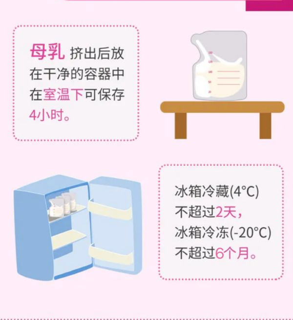 在妈妈准备上班前1-2周,就要开始给宝宝打“预防针”——根据上班后的作息时间,调整宝宝的喂哺时间,给宝宝一个适应过程,并开始尝试定时挤奶并收集;挤出的母乳放在冰箱4℃冷藏可保存48小时,-15℃至-5℃冷冻可保存6个月;妈妈们上班后,可携带储奶袋和吸奶器,定时挤奶,变身“背奶妈妈”。