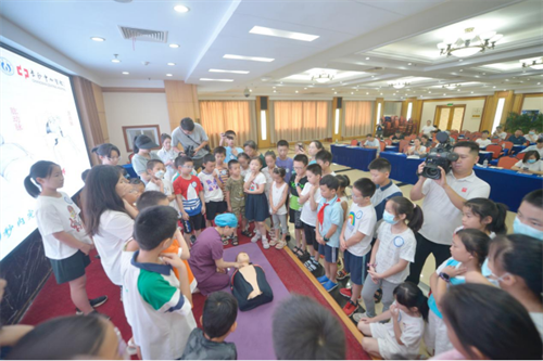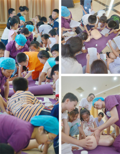 儿科与急诊科承担教学,80组面向社会招募的7至14岁的中小学生家庭参与了夏令营。