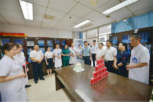 党总支),看望、慰问各岗位医务工作者,为他们送上鲜花、水果和祝福,勉励全体医务工作者不忘初心、牢记使命,争做爱岗敬业的楷模、精研业务的标兵,不断提升服务能力和服务内涵,不断增强广大人民群众的获得感、安全感和幸福感。