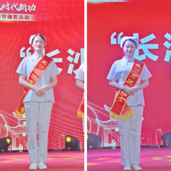 董启玉、周兰作为“长沙市优秀护士”代表上台领奖