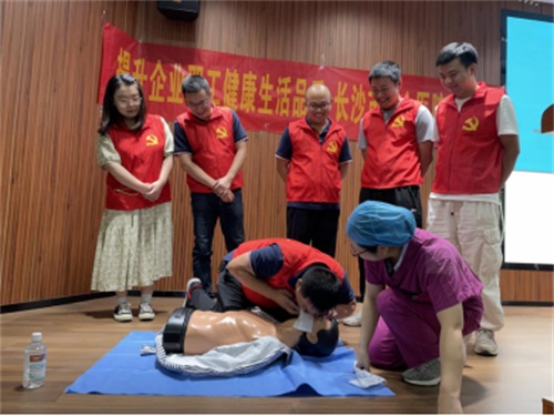 为落实长沙市总工会关于提升职工健康生活品质的文件精神,普及企业职工急救知识,提高自救互救能力和社会应急能力,8月31日下午,社会工作办组织麻醉手术党支部来到湖南大族装备有限公司,为企业领导和职工开展了别开生面的急救知识理论与操作培训课堂。现场有50余名领导职工参与了此次培训。