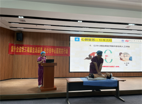 麻醉手术科党支部书记、麻醉手术科副主任刘松华对湖南大族智能装备有限公司的邀请表示感谢,希望此次培训把专业、科学的急救知识传递给大家,提高企业职工急救技能。
