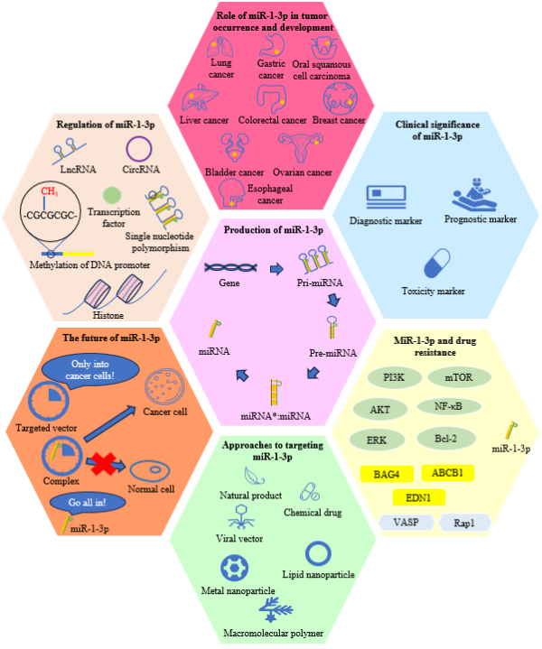 该论文从miR-1-3p的产生过程、调控因素、在肿瘤发生发展中的作用、临床意义、耐药性和靶向途径等多个方面介绍了miR-1-3p在癌症中的重要作用,阐述了目前miR-1-3p在临床转化过程中遇到的困难与未来的发展方向,并提出药理学与药剂学等多学科的深入交流与融合,将为基因药物与靶向治疗的发展与转化提供强大的驱动力。