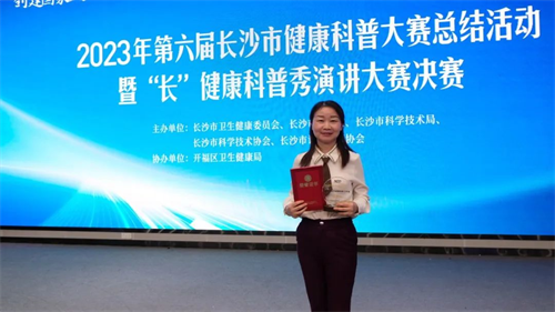 2023年11月3日下午,在开福区少年宫报告厅举办的长沙市第六届健康科普大赛总结颁奖活动暨“长”健康科普秀演讲大赛决赛上,立博体育