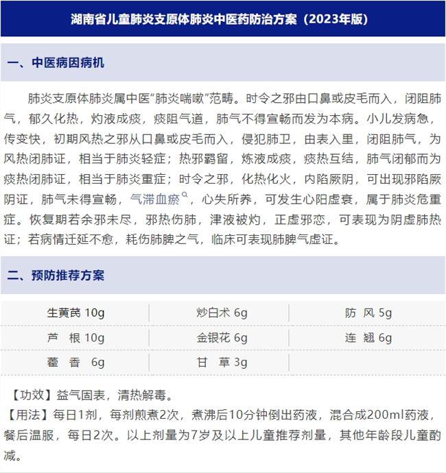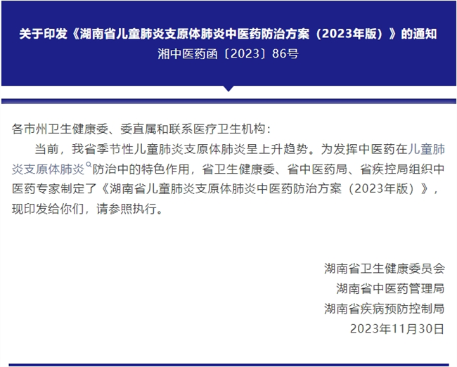 《湖南省儿童肺炎支原体肺炎中医药防治方案(2023年版)》发布