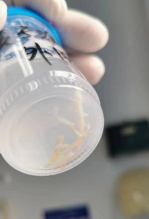 (支气管镜取出形状类似“树枝”状的白色胶冻样物)