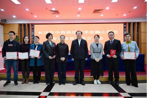 党委书记邓平、长沙市中西医结合学会秘书长王星娜、中国中西医结合学会脑心同治专业委员会秘书长秦亚丽等领导、专家亲临会场,秘书长王星娜主持成立大会。