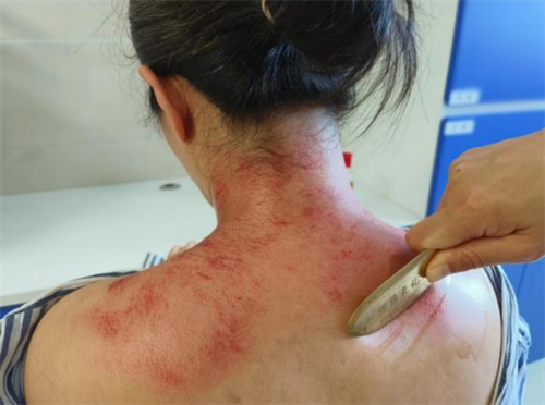 仔细询问病史发现患者明显怕冷,舌苔白腻,流清涕,咳嗽痰白,张凌护士长在完成耳穴治疗后,再对患者进行大椎、肺腧等穴位的火龙罐治疗,通过穴位与艾灸、拔罐与刮痧于一体的治疗,达到驱寒解表、温经通络、扶正祛邪的作用,在经过半小时火龙罐治疗后,患者顿感全身轻松,感冒症状明显缓解。