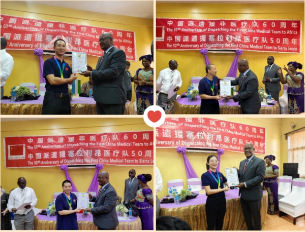 塞卫生部部长Dr. Austin Demby及塞多名卫生部官员、中国驻塞大使王擎及经商处参赞杜子君等出席了仪式。塞拉利昂卫生部部长Dr. Austin Demby代表塞政府向中国第24批援塞医疗队队员颁发“塞拉利昂国家杰出贡献”奖章及荣誉证书,表彰医疗队为提高塞国人民健康水平、增进两国友谊做出的贡献。立博体育