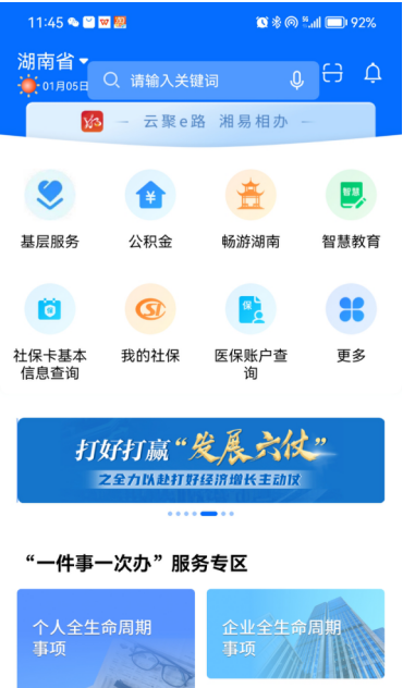 1、在各大应用市场搜索下载“湘易办”APP,注册、登录。