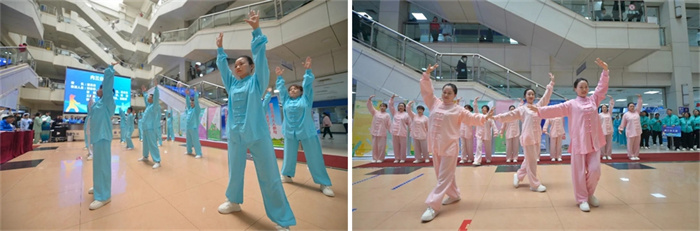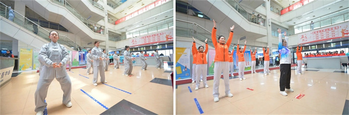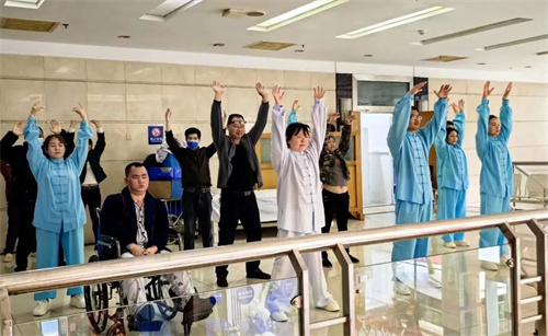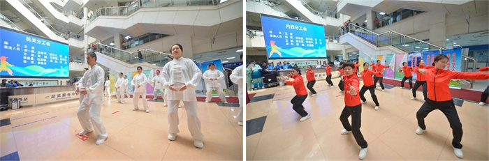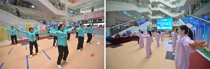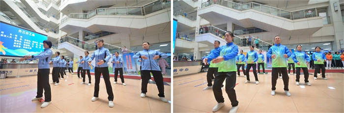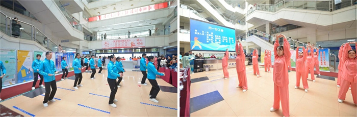 各个角落开展了八段锦快闪活动,因工作原因不能到活动现场的职工和很多患者、家属参与其中。