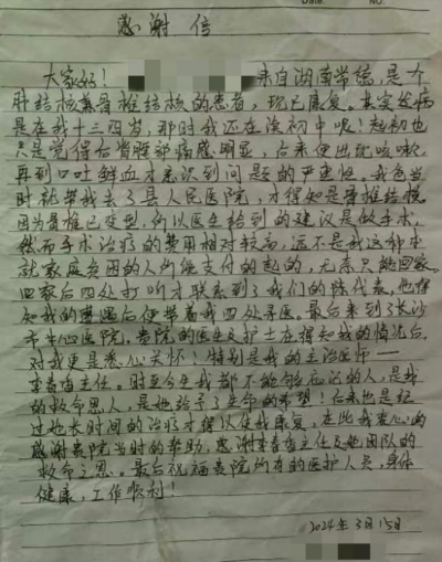 结核病诊疗中心引起了广泛关注。这封信出自一位曾经的结核患者——小莹(化名)之手,她以真挚的笔触,回顾了自己与病魔抗争的艰难历程,并在3月24日世界防治结核病日到来前,用一封充满感情的信,对医护人员表达了深深的感激之情。