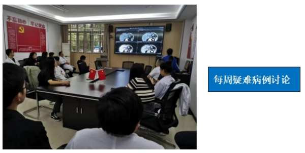 4.完善的培训体系:科室建立了完善的培训体系,为进修学员提供全面、系统的专业培训。我科历年多次承办国家级、省级继续教育培训班及市级读片学习交流会,每周进行病例讨论、教学读片以及教学小讲课。放射科基地在陪研究生及规培生20余名。