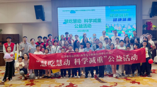 营养科、团委、关工委联合火宫殿举办“慧吃慧动 科学减重”公益活动,亲子家庭齐聚,聆听健康授课,参与科学烹饪及健康运动会。