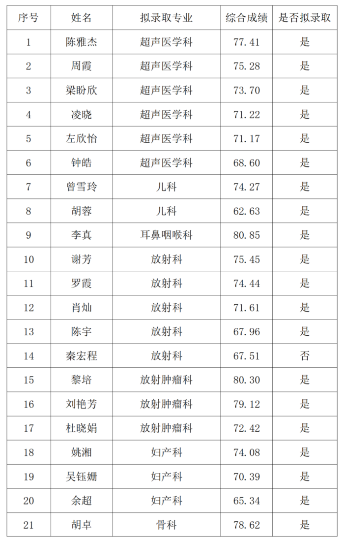 根据《湖南省卫生健康委科教处关于做好2024年度住院医师规范化培训招收工作的通知》、《立博体育|实时赛事直播与比分|权威专家分析与体育竞猜平台 2024年住院医师规范化培训招录工作方案》,经住院医师规范化培训招生工作领导小组审核,现将2024年住院医师规范化培训招录第一批第一志愿录取名单予以公示,公示期为2024年4月24日-30日,如对录取结果有异议,请联系内部监督科,联系电话:0731-85668104。