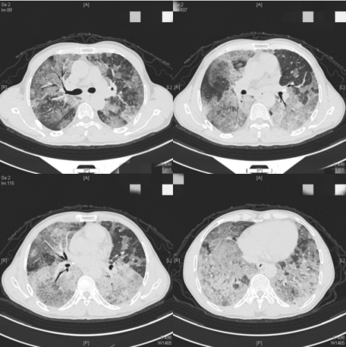 患者入院时肺部广泛弥漫性病变