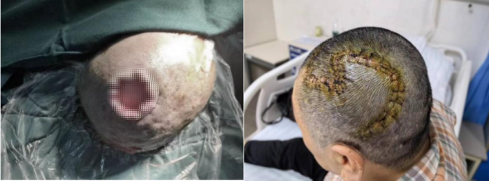 手足显微外科团队成功切除了梁奶奶的病变并设计运用“S”型的局部皮瓣转移术覆盖创面,保留了头皮的完整性,避免了植皮带来的头发缺失。出院时梁奶奶激动地拉着医护人员的手连连道谢。