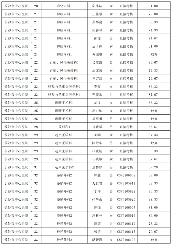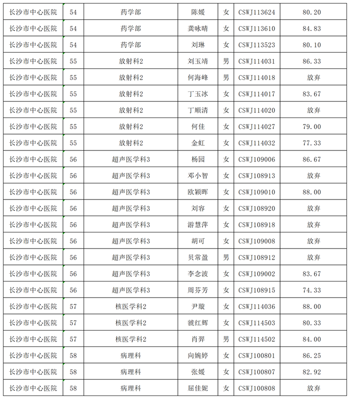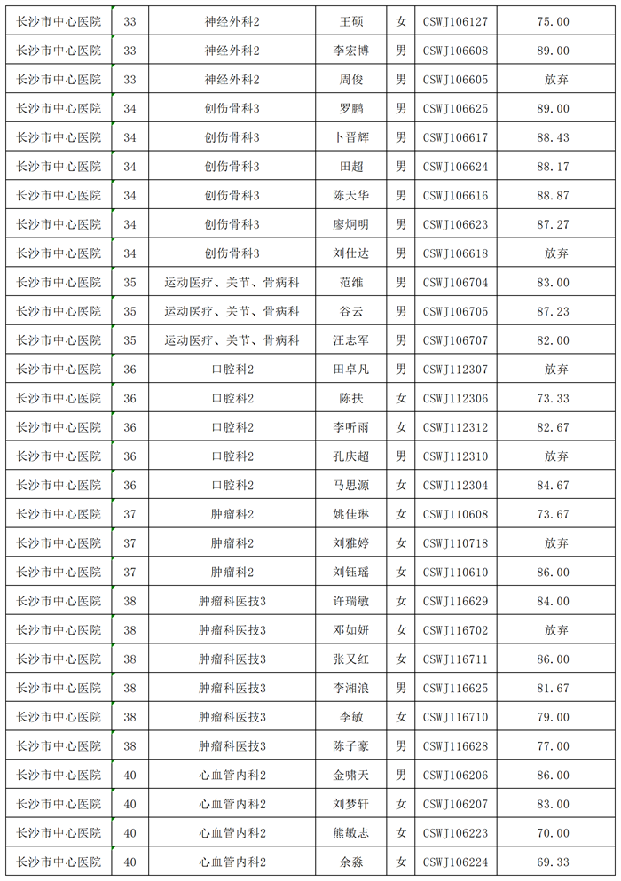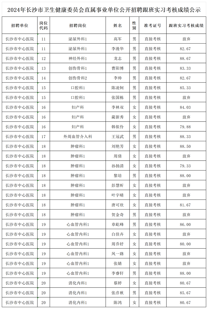 2024年长沙市卫生健康委员会直属事业单位公开招聘跟班实习考核成绩公示