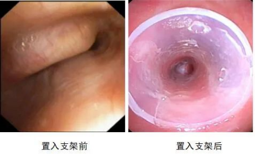 在麻醉科刘松华主任团队的协助下,呼吸与危重症医学科杨红忠主任、刘超群副主任医师、蒋坤主治医生,通过全麻硬镜下,为王建国置入Y型硅酮支架。手术顺利,支架将气管及右主充分支撑,术后第二天即拔除气管插管,第三天转出ICU。