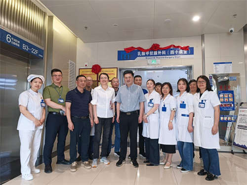 5月21日下午,立博体育 乳腺疾病和甲状腺疾病多学科诊疗中心(MDT)在医疗综合楼十四楼乳腺甲状腺外科正式挂牌成立。党委副书记、副院长刘鸣江,医务部副主任李金平及两个团队的全体专家参加了揭牌仪式。