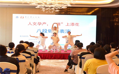 产科活动现场也组织孕妇一起表演了八段锦,现场很多孕妇及家属跟着台上的工作人员及孕妇一起练习,后期也会不定期开展类似的活动。八段锦作为一种健身功法,对孕妇来说,适度的练习可以促进身体的血液循环,增强体质,有利于胎儿的生长发育。通过八段锦的练习,可以缓解孕妇在孕期可能出现的腰酸背痛、下肢水肿等不适症状,提高孕妇的舒适度。另外,八段锦的练习需要专注和放松,这有助于孕妇调节情绪,缓解孕期焦虑和压力。