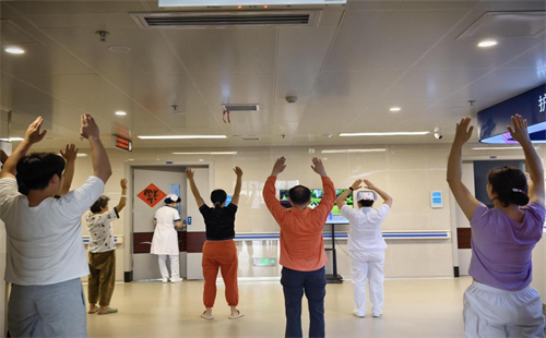 中西结合科每天下午三点,组织全科病友一起练习八段锦,得到了病友们的大力支持。通过适当的八段锦练习,可以增强肌肉的力量和骨骼的密度,增强身体的耐力、力量和灵活性,提高身体素质,为身体康复打下坚实的基础。